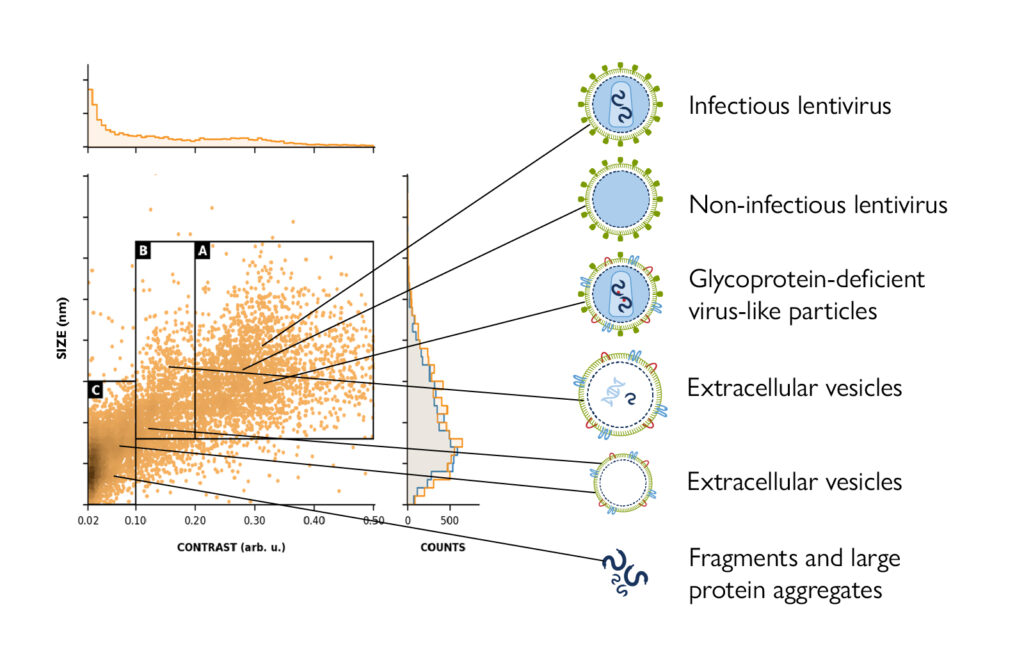 By quantifying size and mass-related contrast, it can separate intact LVVs from partially assembled particles, empty-like particles, debris, and aggregates, giving a true representation of sample purity.