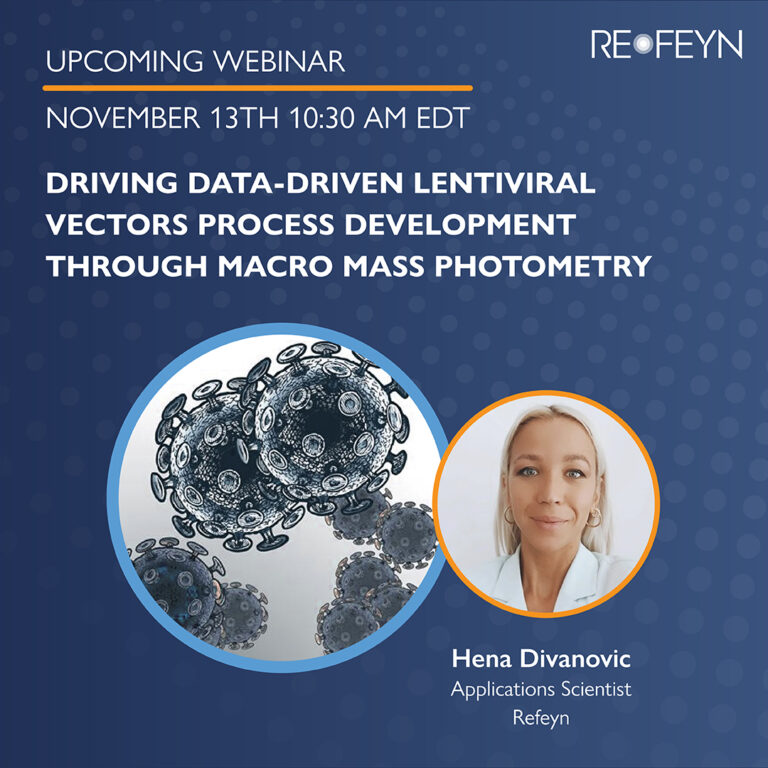 Join Refeyn’s Hena Divanovic to see how macro mass photometry enables rapid, multiparametric analysis for real-time, data-driven process optimization.
